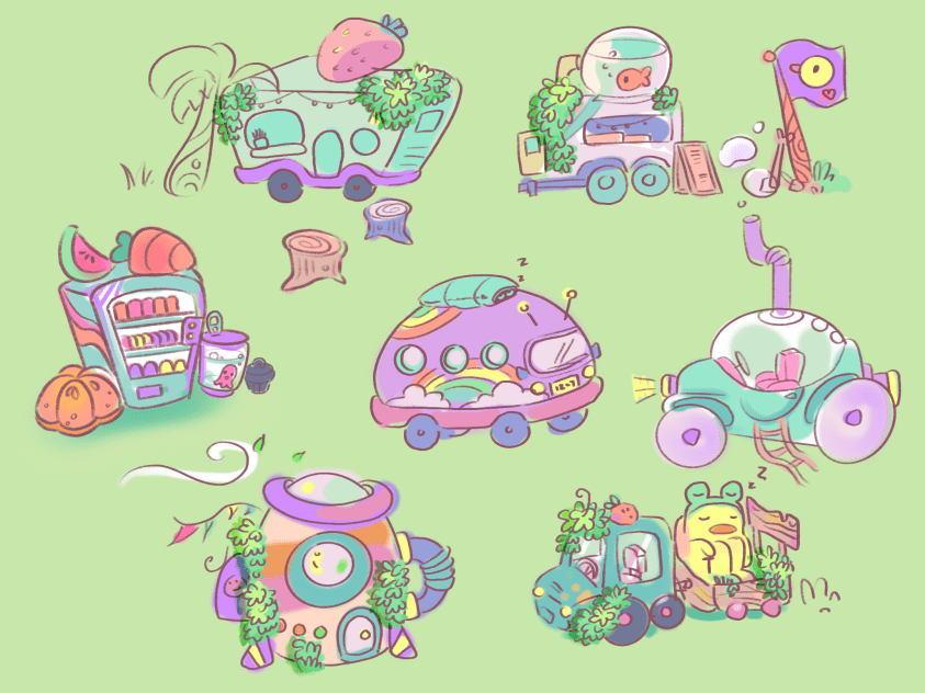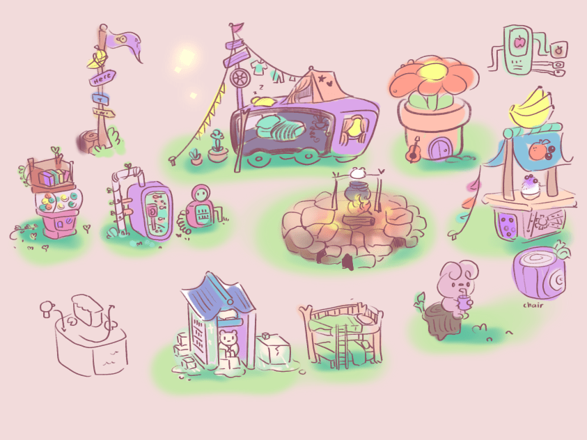 First assets for our “perfect corner.” I made sure to follow our style of “round and friendly.”