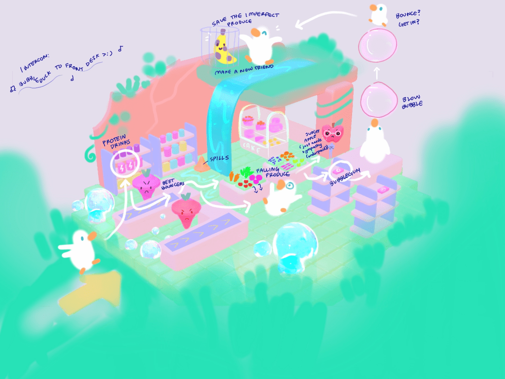 Painted a splash illustration for our pitch deck! Kristin drew Bubbleduck and gave me very helpful feedback. (https://kristintan946.wixsite.com/)