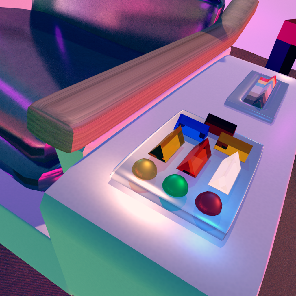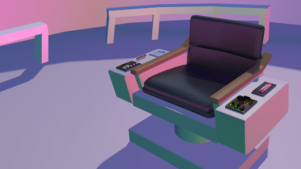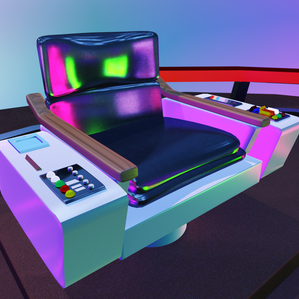 Watching a lot of Star Trek: The Original Series lately and the set pictures are absolutely gorgeous. Modelled the captain’s chair and played around with some funky lighting.