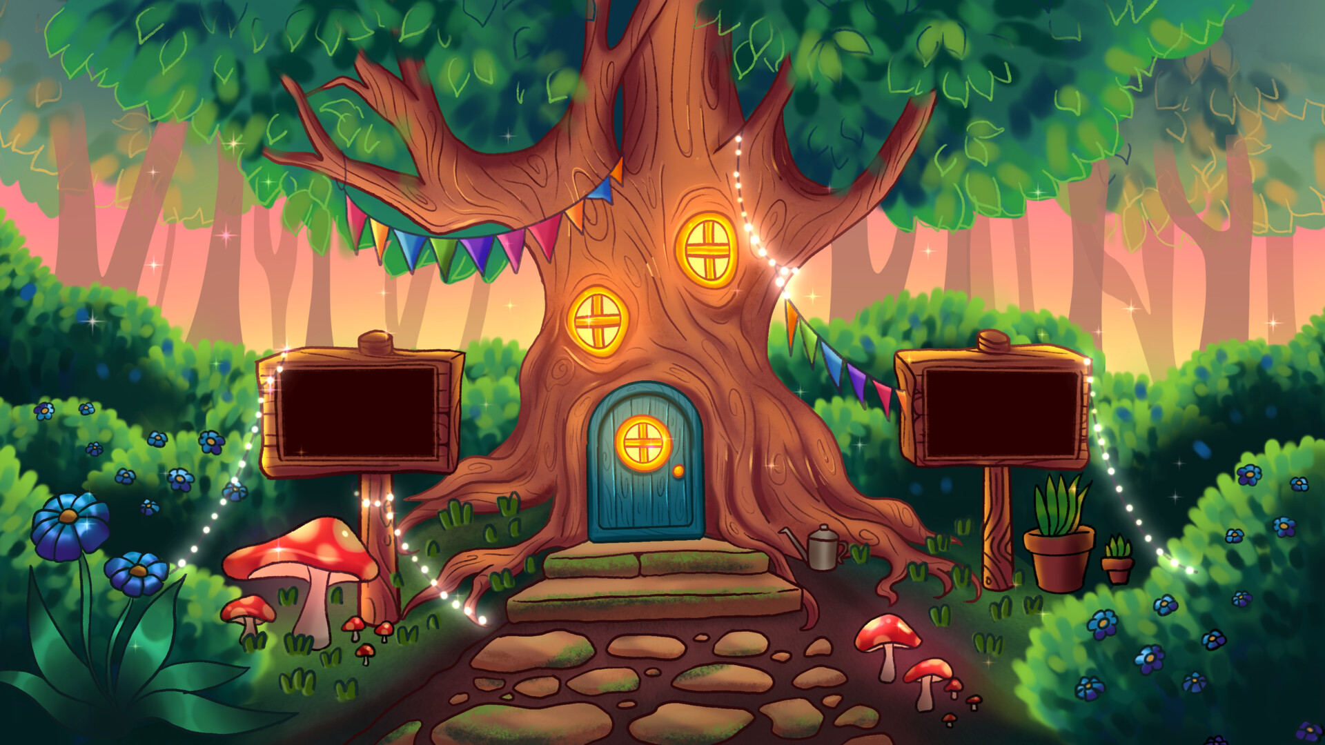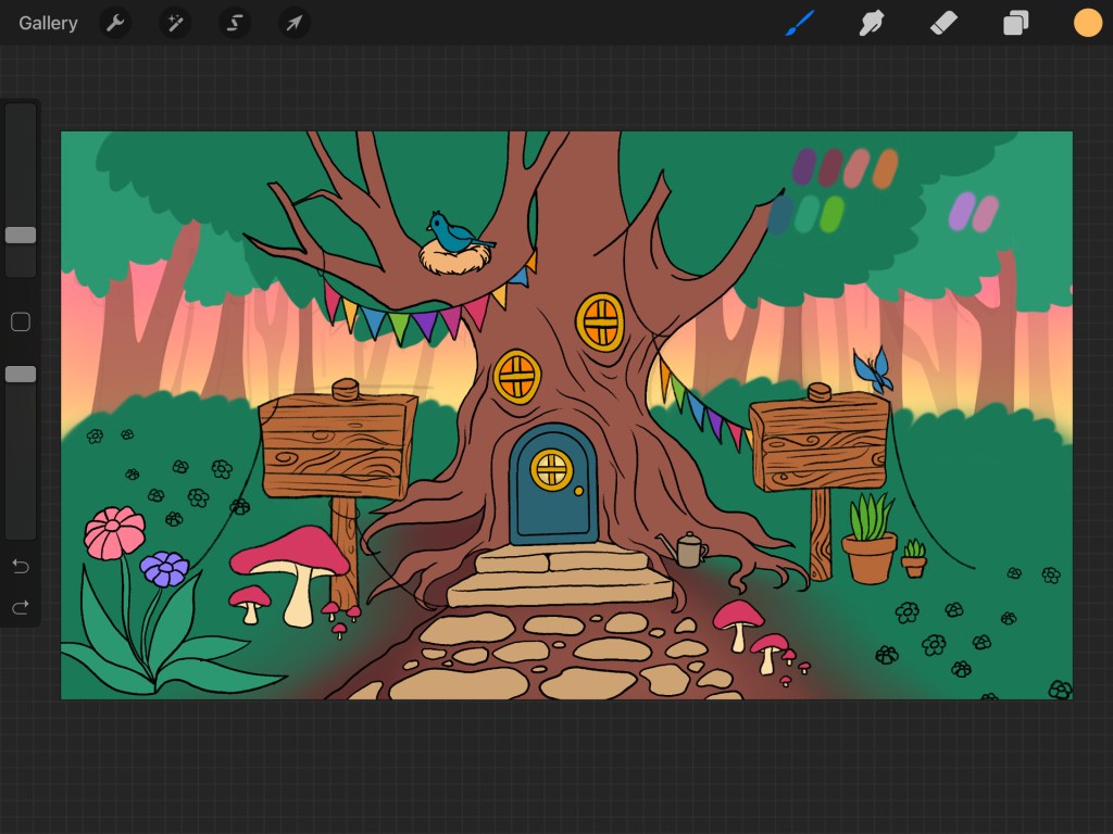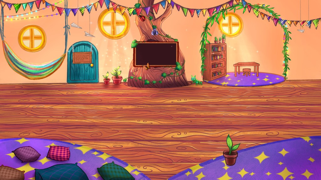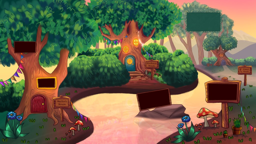 Highlights from a set of illustrations for Double A Labs for a children’s educational interactive space, from sketch to final iteration. The user is meant to zoom in and move their avatar around, so there are spaces for videos they can watch and cozy nooks where they can hang out.