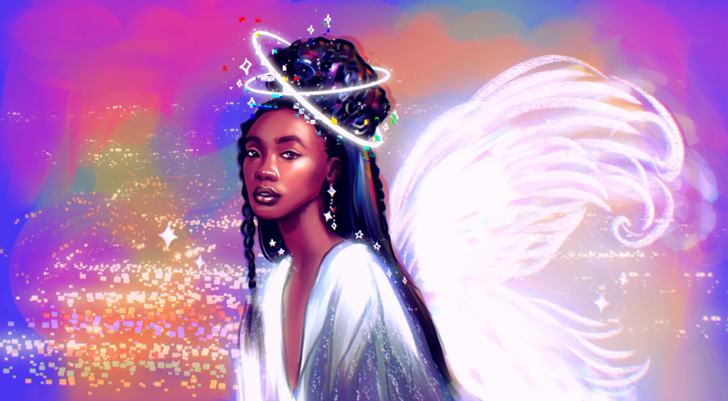 Self indulgent piece to practice painting faces and try out the city scape brush pack by Devin Elle Kurtz.