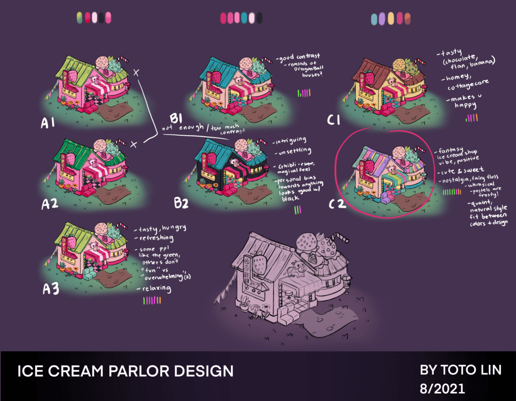 Ice Cream Parlor Design Final illustration Color explorations. Thank you to friends and With With Indies Discord for helpful feedback! Related