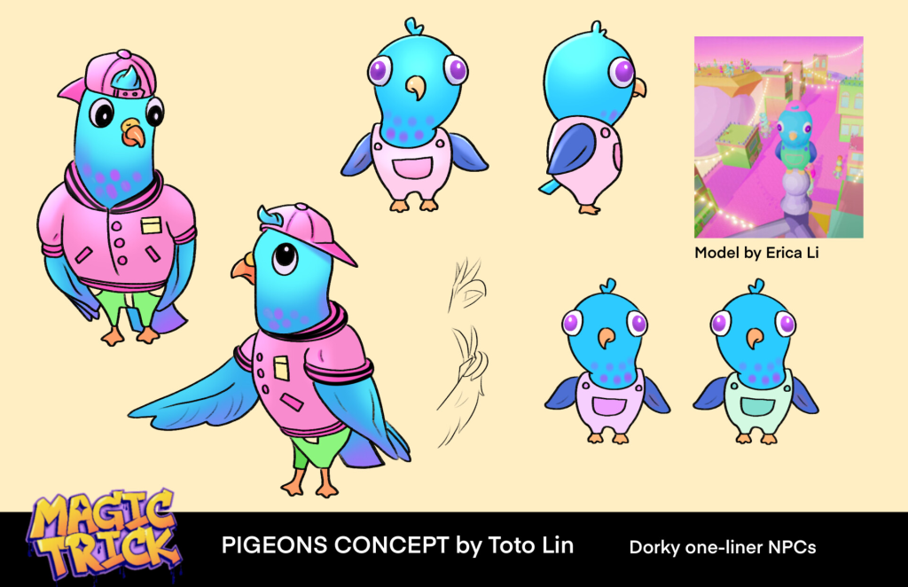 Character and environment concepts for Magic Trick, a magical skating game! My capstone project, made with a lovely team and winner of Visual Art Excellence, Capstone Production, and Peer Choice Awards at UCSC Games Showcase 2020.