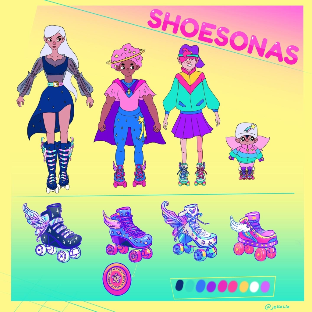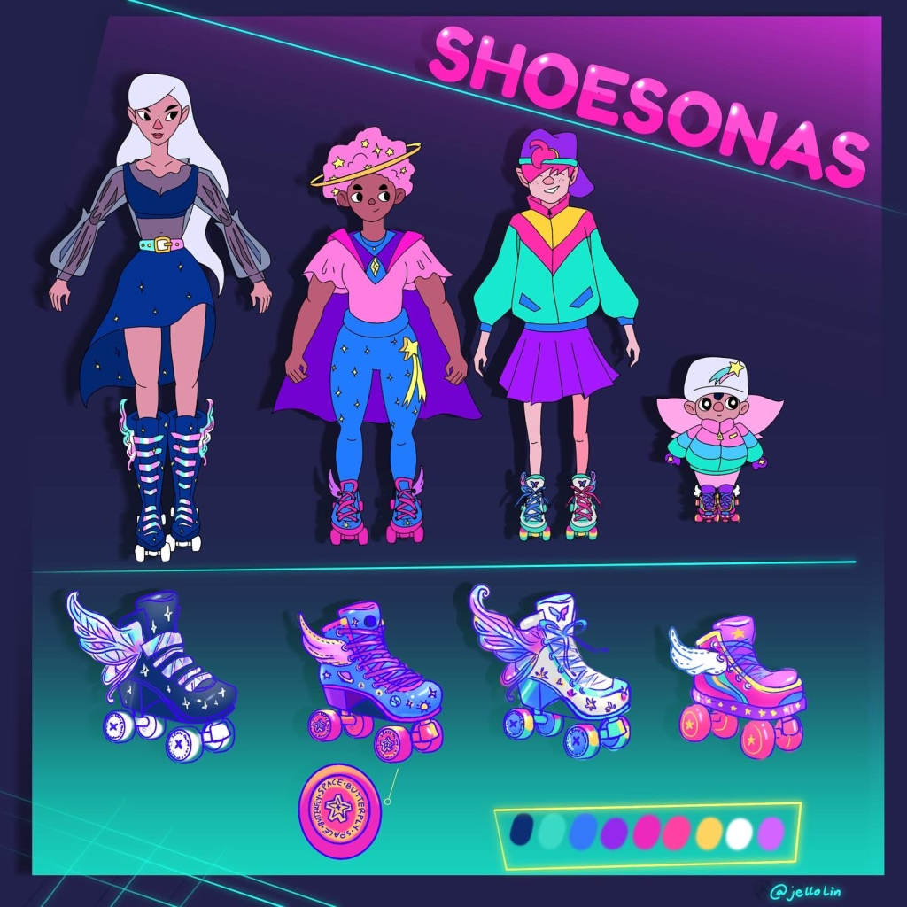 The other day I drew some fun shoes and imagined what characters would wear them. Having not yet explored the setting, with the alternate color backgrounds I feel like it could be a fun bright vibe or even a super secret spy vibe.